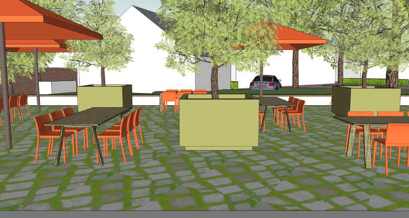 Het klooster krijgt mede op initiatief van Ulft 2020 een nieuwe invulling. Ondernemers- centrum IJzersterk Ondernemen gaat het klooster exploiteren. De voorzijde van dit gebouw is de formele entree voor de bedrijven. De tuin achter het klooster kan worden omgevormd tot een nieuwe informele voorzijde van het gebouw met centraal een horeca bestemming. Het doel is om te onderzoeken of de buitenruimte ook gebruikt kan worden door het Schuttersgilde tijdens evenementen. Een flexibele inrichting van de tuin maakt een dubbelgebruik mogelijk. |
