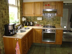 In het interieur refereren gladde vlakken en kale details aan de eenvoudige puurheid van het achterhuis. Het houten keukenmeubilair en de oude houten dakconstructies geven de keuken een warme, doch frisse uitstraling en brengen een relatie met de materialisering van de woonkamer. De ruimte is niet groot, maar geeft het gevoel dit wel te zijn. Een huis én een tuin zijn getransformeerd naar een huis met een tuin. |