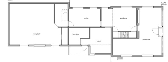 Verbouw winkel naar kantoorruimte Ulft De bestaande gedateerde grote pui, in het verleden gemaakt voor een winkelfunctie is vervangen door gevel passend bij de traditionele architectuur en nieuwe functie van het gebouw. Geprobeerd is met een minimale ruimtelijke ingreep een passende representatieve kantoorruimte te ontwerpen. Het interieur kent een grote mate van transparantie. |