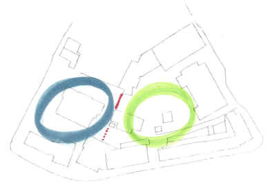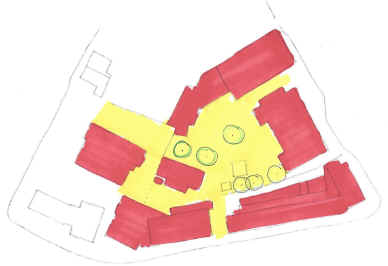 ![]() ![]() het huidige binnengebied is opgedeeld ruimtelijk voelbaar maken van de historische kloostertuin |