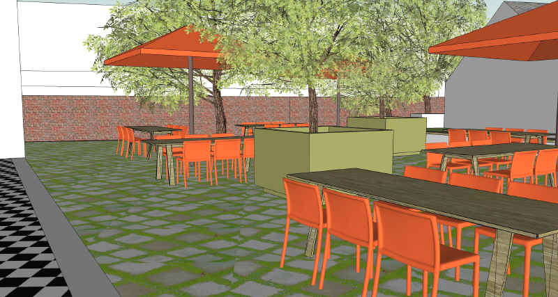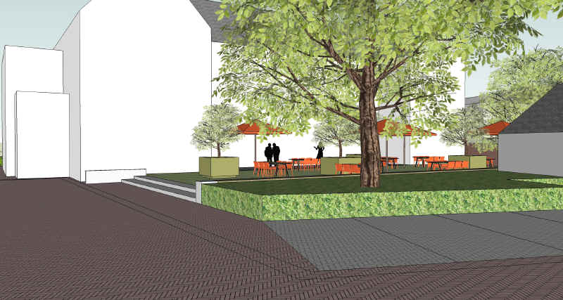 Het klooster krijgt mede op initiatief van Ulft 2020 een nieuwe invulling. Ondernemers- centrum IJzersterk Ondernemen gaat het klooster exploiteren. De voorzijde van dit gebouw is de formele entree voor de bedrijven. De tuin achter het klooster kan worden omgevormd tot een nieuwe informele voorzijde van het gebouw met centraal een horeca bestemming. Het doel is om te onderzoeken of de buitenruimte ook gebruikt kan worden door het Schuttersgilde tijdens evenementen. Een flexibele inrichting van de tuin maakt een dubbelgebruik mogelijk. |